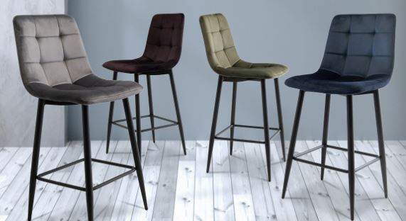 The Bella counter stool is curved, elegant and sultry. Exquisitely tailored in a stunning cross stitch velvet fabric and finished with black powder coated legs. An ideal compliment to any kitchen space.